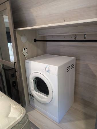 I installed side table's along each side of the bed with electric plugs and USB ports, put USB ports on the side of the dresser. I added these to master bathroom, new sliding shower door that opens all the way to give full access and is self cleaning, put a larger sink in their with a new towel rack. I put carpet on the steps, pull handles on each door, tinted the glass doors in the main and kitchen area. In the rear bathroom I put a cabinet above the toilet. Installed another electrical outlet on the one wall in the rear area. Replaced the old mattress with a very comfortable king-size mattress. Underneath the bed I made a large storage area . Replaced the Air compressor with a larger unit. The unit is in Great condition. Generator is perfect. Plus it has Solar. I wouldn't be afraid to head out to California with it tomorrow. I just don't have the time anymore.