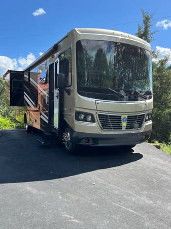 Great 35' motorhome, Low milage, Ford V-10 Triton, 320 HP, 80 Gallon fuel tank, 2 slides, generator, zoned Heat & AC, Heater 34000 (BTU's) 27000 BTU A/C, self-leveling, tow-hitch, rear ladder,...