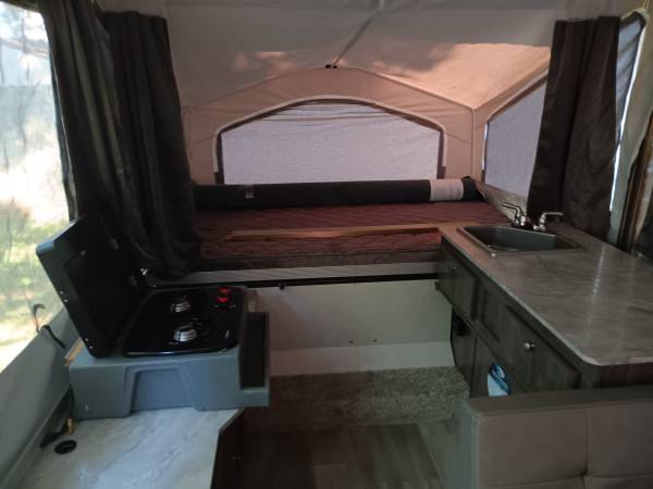 Like new 2022 Rockwood 1940LTD tent camper Heated beds, Range can be used inside or outside. all accessories: Power cord, water hose, support jacks, Canopy with poles and tie down lines.