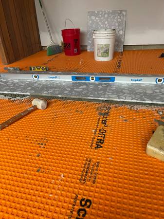- Demo Tile, hardwood, carpet or any other existing flooring