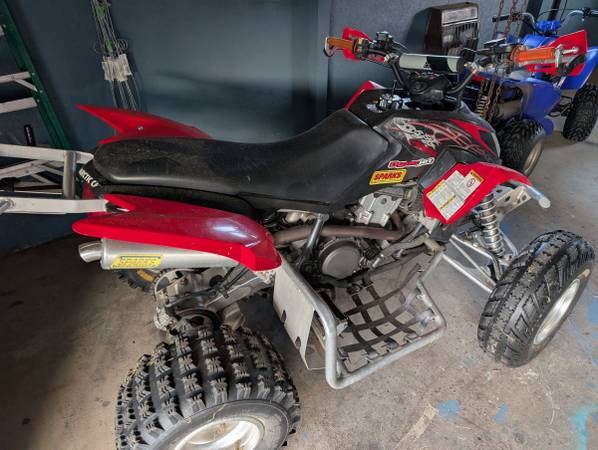 Looking to sell my quad, it may need a hub for one of the front wheels. It seemed to lock up on me then randomly unlocked up. Not sure what happened but it will need addressed eventually. As of now it's not locked up and rolls fine. Other than that it has tons of aftermarket parts. Engine runs great lots of power it's a wheelie machine.
