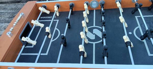 This is a very good condition fooball table that is complete including the legs . I just took them off to haul it home. Comes with balls Call or text