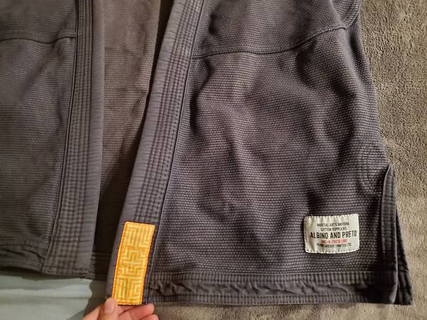 The top showcases our trademark A&P Mark logo embroidered on the upper right sleeve. The placement of our maze lettering patchwork remains the same; reading Albino on the left shoulder, A&P on the upper back and bottom of the lapel, and Albino and Preto on the sides of the pants. The drawstring is black on both colors and comes with a tote bag to make it complete.