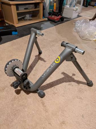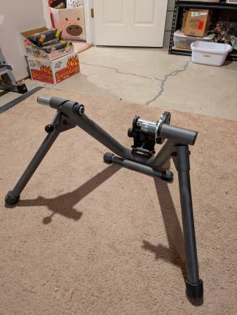 Indoor bike trainer/stand. Good condition. You can mount your bike and adjust your resistance using the magnetic adjustments. Plastic front tire stand included so you can train on a level instead of...