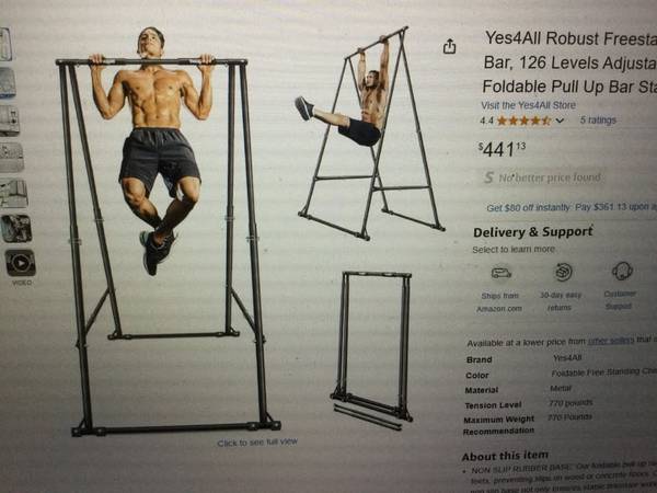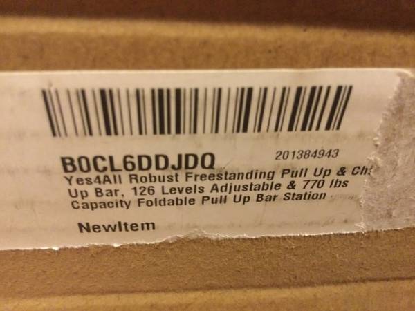 Cash only. New in box. Never used. SERIOUS INQUIRIES ONLY! Yes4All Robust Freestanding Pull Up & Chin Up Bar, 126 Levels Adjustable & 770 lbs Capacity Foldable Pull Up Bar Station