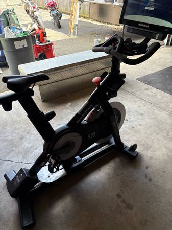 Basically new S22i stationary bike. Electronically goes up and down and adjusts resistance while you ride along with the online courses etc. need the garage space!