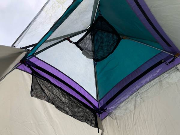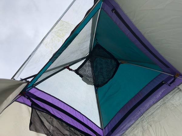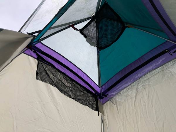 Overhead hammock holds gear,flashlight or shower bag
