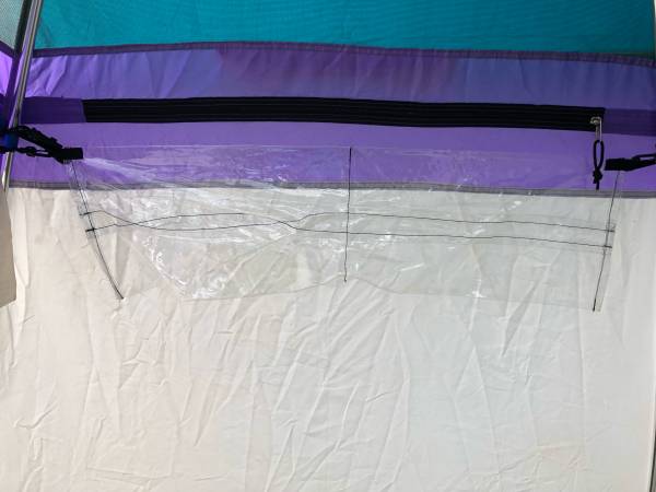 Clear vinyl panel in rainfly for solar bag heating
