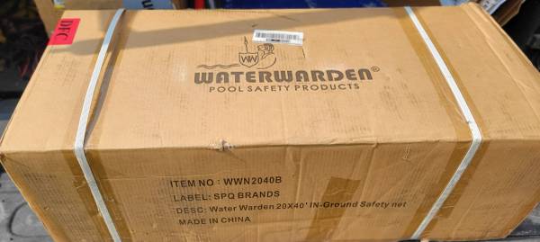Hi I'm Selling A New In Box WaterWarden Premium Inground Pool Safety Net Cover 20' x 40', Rectangular, Heavy-Duty Protection, Easy to Apply, Remove and Store, UV Resistant, Reel Included, Protects Kids and Pets, Brass Anchors