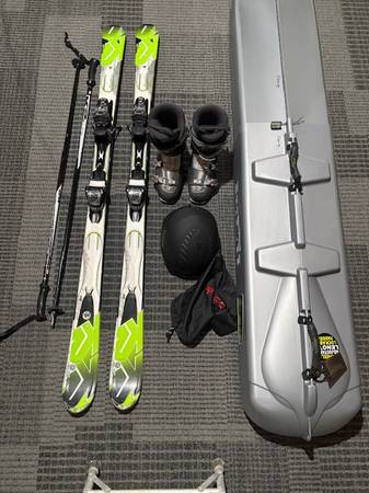 Go Ski! If you are an 8/9 shoe size this set up gets you on the slopes with everything you need! 167CM K2 All Terrain Rocker Skis with bindings, Nortica Boots Men for size 8-9 Shoe Size, Bolle Helmet, Ski Poles, Hard Shell Travel Case. Skis have been used about a dozen times. Maintained by Aspen Ski & Board. All or nothing package. Price is firm. Doc says I can't ski anymore or I would not be selling.