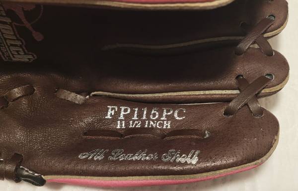 For Sale is a pre-owned Rawlings Fastpitch Series: FP115PC Softball Glove. Right-Hand Throw (RHT) Features: - 11.5 inches - All Leather Shell - Basket Web - Infield Glove The Rawlings 11.5-Inch...