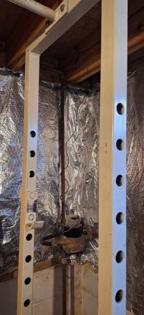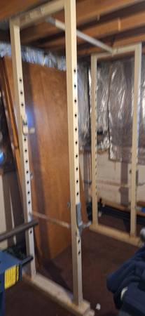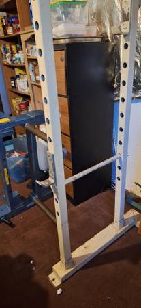 Heavy duty Squat Rack. Purchased at Berry's Barbell in the 90's.Welded frame with some spots of rust