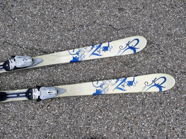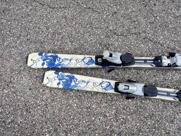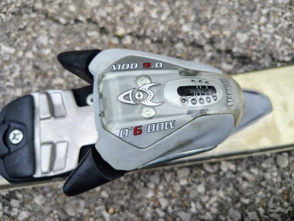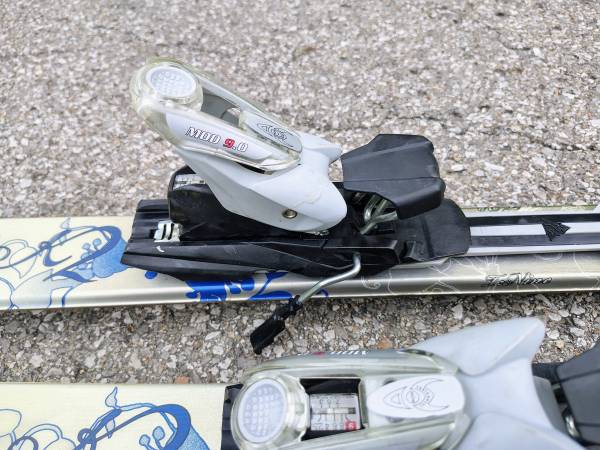 Adult size women's skis with Marker Mod 9.0 bindings in nice condition. No issues. Bottoms of the skis look nice with no gouges.