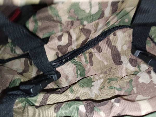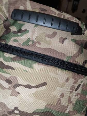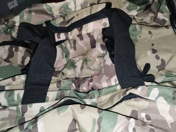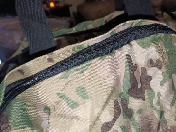 About this item: Large Rectangular shaped duffle bag with roomy interior. Velcro strap handle. Two hidden padded straps make it comfortable to use as a backpack as well.