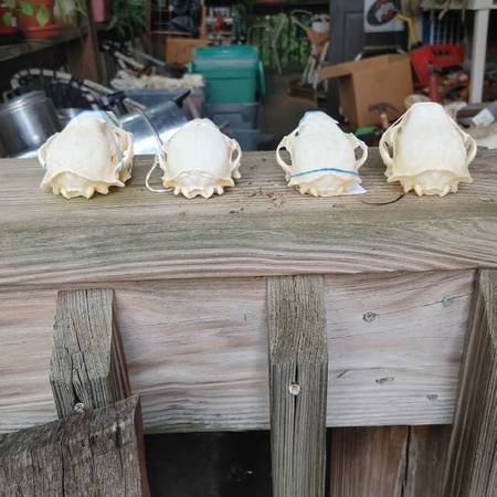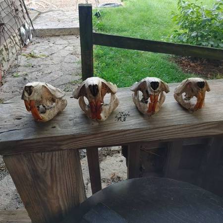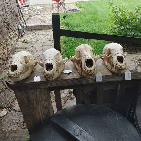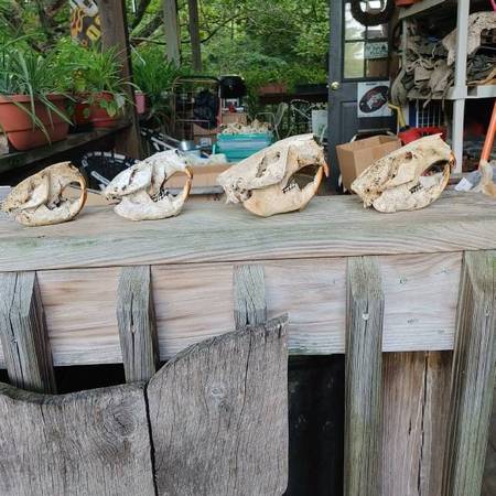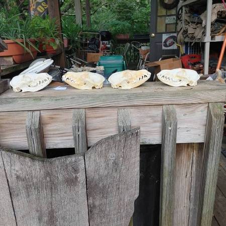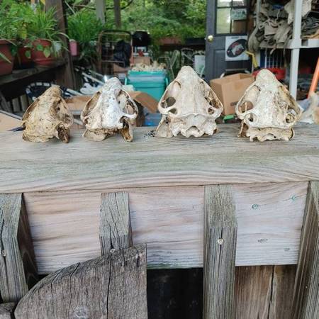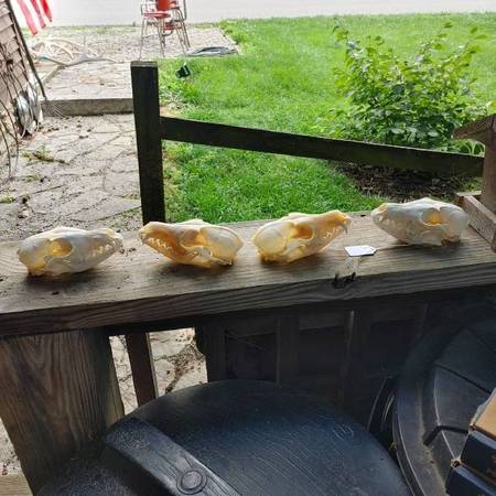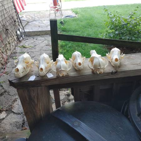 Have a wide selection of animal skulls. Need more info email or call. See sample pics below beaver $32 weasel $27 raccoon $32 fox $32 opossum $36 skunk $31 bear $115 coyote $33 redear turtle $19