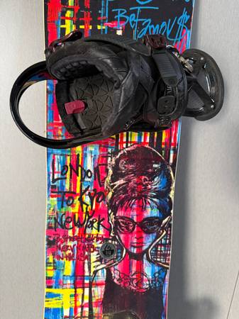 Lib Tech women’s board. Size 149 with bindings. Priced low due to small gash on top deck. This can easily be cleaned up. Great deal on board. Only used a few times.