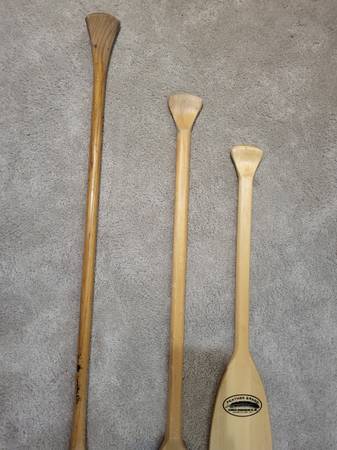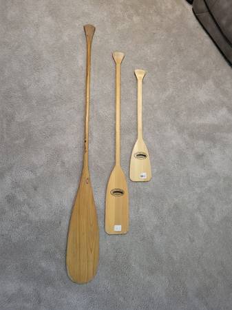 Misc wood paddles New Caviness 30" $15 Caviness 16.5" $SOLD Old Town 64" $SOLD