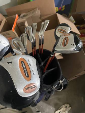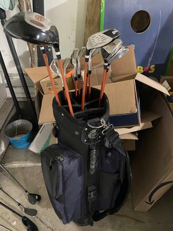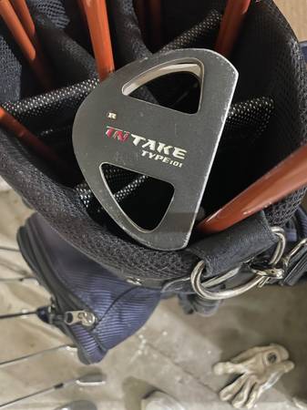 Complete set with affinity cart bag and Ram Intake putter. Set is in good condition with minimal signs of wear. All clubs have golf pride grips.