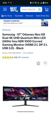 Selling a brand new, unopened Samsung 57" Odyssey Neo G9 curved gaming monitor—still sealed in its original packaging. This is the ultra-premium model with Dual 4K UHD resolution, Quantum Mini LED, 240Hz refresh rate, and 1ms response time. It’s a dream setup for serious gamers, streamers, or anyone looking to upgrade their workspace with a cinematic display.