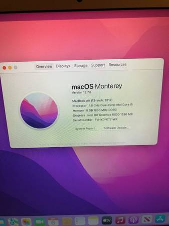 MacBook Air 2017 A1466 | 13.3" i5-5350U 1.8GHz 8GB RAM 128GB SSD OS Version 12.7, pick up only