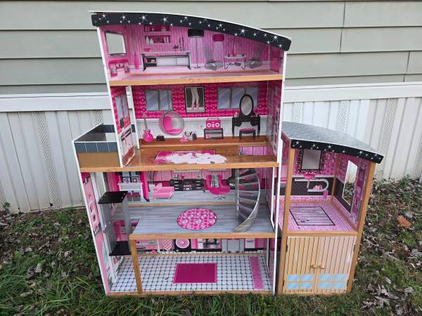 Large dollhouse with working manual elevator. If bought new these cost $200-$300. It needs one floor sticker replaced were my daughter poured water on it during play. Other than that it's in...