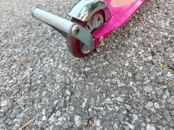 Nice, ready to ride condition. Metallic pink. No issues, no flat spots on the wheels. No tears the hand grips. The height is adjustable. No deliveries. Your email takes priority if you send your phone number, tell me if you text.