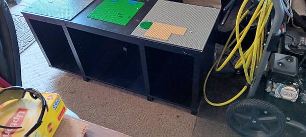 This is a pretty cool entertainment stand turned into a Lego building station . As you can see in the pictures the top on the table has areas for attaching legos to build your ideas and have...