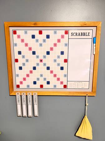 I have a wall mounted scrabble board with all parts included for sale. The board, name/piece slots, and magnetic letter tiles with holding bag. The board is clean and in like new condition.