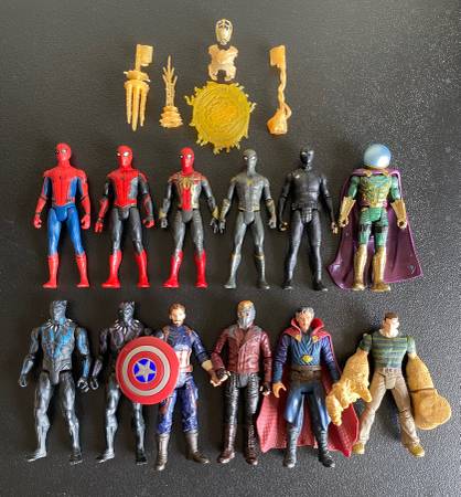Cool Bundle of MARVEL Movie Figures! Spider-Man, Captain America, Star-Lord, Black Panther, Doctor Strange, Mysterio, and SandMan!