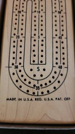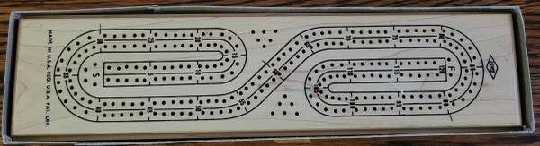 - Original E.S. Lowe Milton Bradley Hard Wood Cribbage Board