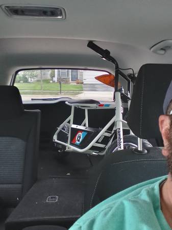 Bought this brand new for $425 in the fall of 2024. It was ridden about 15 min and then has sat in my dusty garage for almost a year. Runs and charges perfectly. Zero cosmetic or mechanical defects. Some people buy these to mod out. I'm located near Obetz (270/23) for pickup. It does fit in a car (see photos). I can help with delivery within Central Ohio or off 33 between Obetz and Athens.
