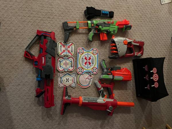 Nerf and Boomco guns and targets. Everything pictured for $40.00