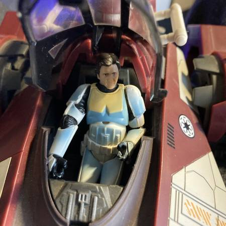 The 2007 Star Wars Revenge of the Sith 30th V-Wing Starfighter is a 3.75-inch plastic action figure from the Star Wars franchise, specifically from the Episode III - Revenge of the Sith movie. This collectible item represents a Republic Pilot and Sith character from the series, making it a sought-after piece for fans of Star Wars. Produced by Hasbro as part of The Clone Wars series, this original action figure is a must-have for enthusiasts of the popular TV, movie & video games theme.