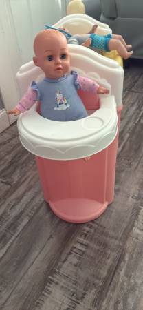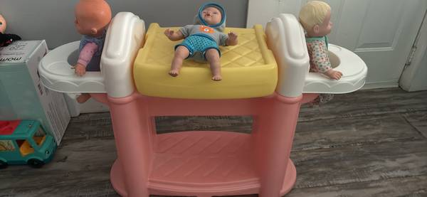 I have a little tikes double sided high chair/bath, changing table. Dolls in pictures is not included just showing example on how they sit. Pickup in orient cash only