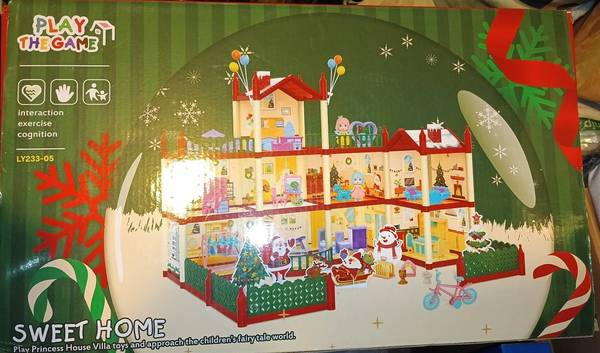 Christmas Doll House Playset, Dream House Pretend Doll House with Accessories Dolls House Garden Princess House Birthday Gifts (Two Floors)