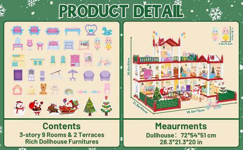 Christmas Doll House Playset, Dream House Pretend Doll House with Accessories $35 (Logan)
