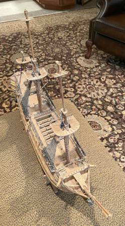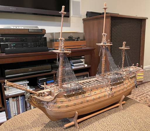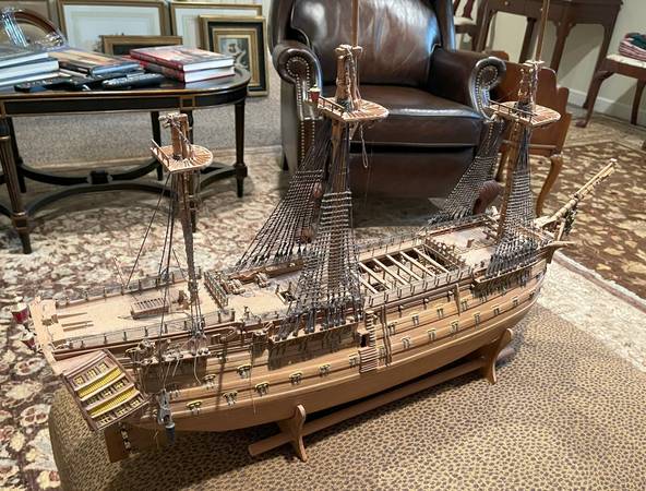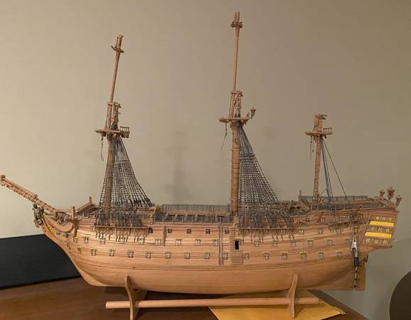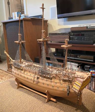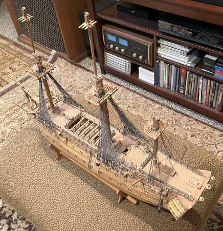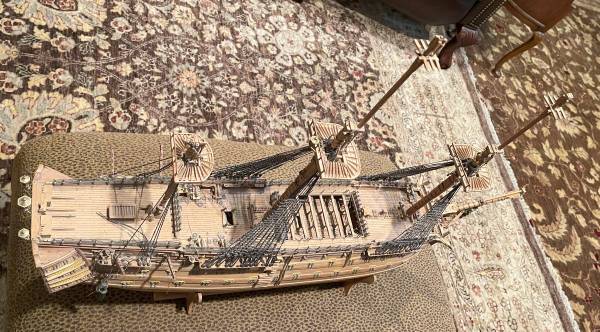 This model ship (sailing ship) has been hand crafted from individual parts over a multi-year period.