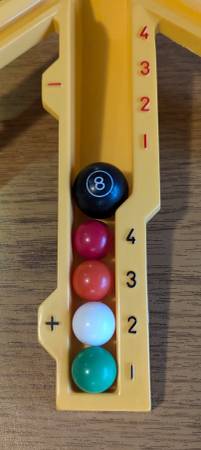This is the classic "Beat the 8 Ball" game from Ideal. ©1975 Complete in the Box(CIB) This includes the instruction sheet & two spare, yellow score sliders. NOTE: The yellow stand for the red...