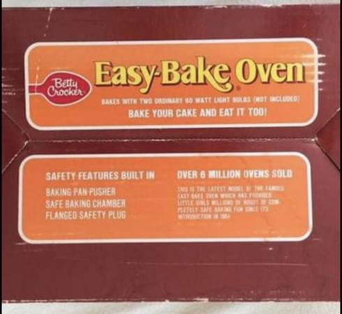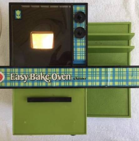 Vintage 1973 Kenner Easy-Bake Oven in VERY GOOD condition. Oven works! Complete with light bulb, utensils, cookbook and instructions. No mixes. Pans have slight discoloration. Minimal wear to box. Fun, original toy. Not a reproduction. Ideal for collectors or adults with fond childhood memories. Great retro display piece. Seller can meet locally.