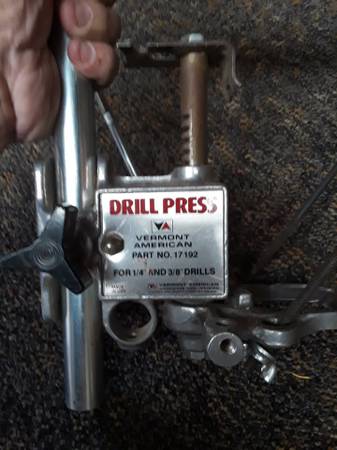 This is a good used drill press that you just fasten your drill into and then it performs like a drill press should . It is in good wokring condition. call or text