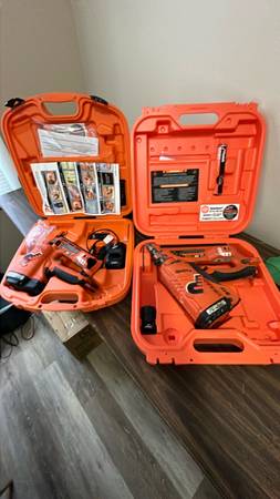 Hi I have a brand new never used Paslode 16 gauge cell gun and a framing nail gun the newer ones. They come as pictured , there is only one charger between the 2 guns that’s why I am selling them together. Just don’t use them and maybe someone can for punch out or somewhere there is not power available . The framer was used they both have good batteries, come try them out. Thx Mike call or text