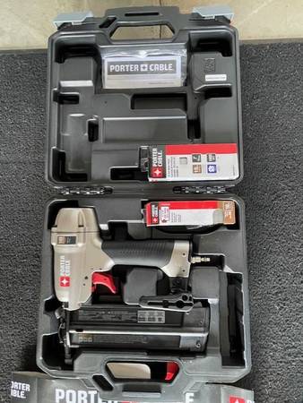 Magnesium body and lightweight. Drives 18-Gauge nails from 5/8 in. to 2 in. length. Low nail reload indicator. Sequential style trigger; long life maintenance-free motor to keep from staining the work surface. The kit includes carrying case, removable non-marring nose tip and owner's manual. Used Once/LIKE BRAND NEW! $70.00.