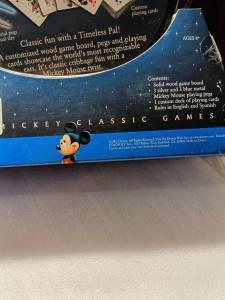 The Disney Mickey Mouse Ears Cribbage Board is a fun and nostalgic collectible game featuring the iconic character Mickey Mouse. This set includes the cribbage board, cards, and pegs, all in the matching Disney-themed design. Made in China in 2005, this game is suitable for ages 8 and up, making it a great addition to any Disney fan's collection.
