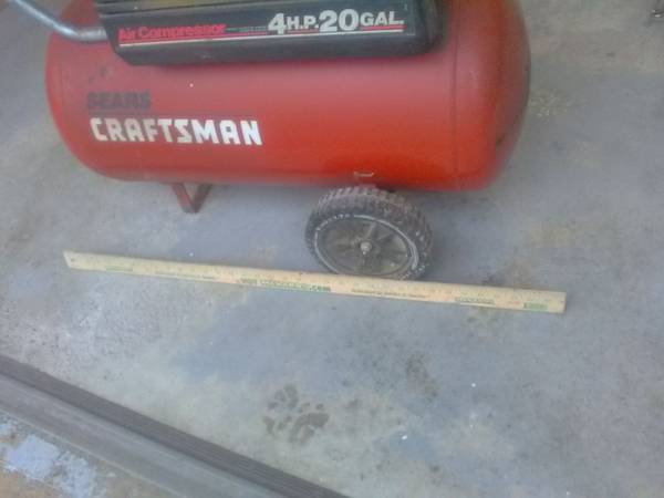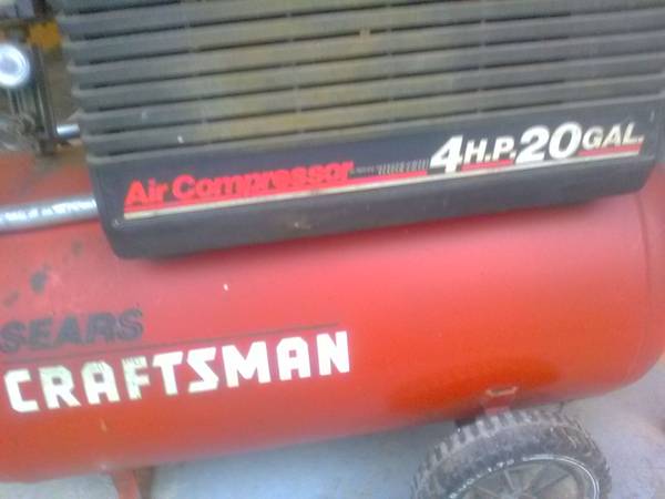 As shown and still working after 40 years ! 220 volt 20 gallon 4 horsepower. I bought this new from Sears Westland in May of 1986 and used over the years to paint cars and bikes. Have not used for past three years and I am downsizing. I last started this compressor up on November 25, 2025. Has normal dirt and wear and tear. If it sits for a while, the air does leak out and not sure where that is. But, once running it is fine for small job sandblasting or painting. I will include extra oil lubricants and new air filters. It is about 30 inches long. What is this worth? MAKE an OFFER ! I will complete the CASH sale at the Menards on US 23 North of Columbus and South of Delaware, Ohio. Text me with your first name if interested and I will respond. Thank you.