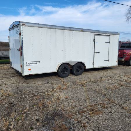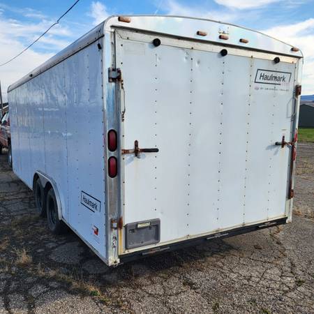 Haulmark.# 1 brand of enclosed trailers. In good condition, tons of good usable wood. Selling because of health reasons. Framing lumber. Dryed sawmill lumber, lot of craft wood & antique doors....