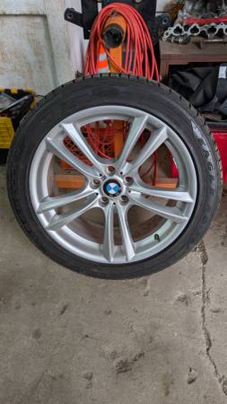 Pair (two) of BMW F07 5 series Style 303 wheels, fronts only, 20x8.5 +25 offset, 5x120 bolt pattern, 72.56mm center bore. Tires are 245/45 Goodyear Eagle RSA2 with about half tread dated 2021.