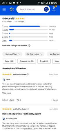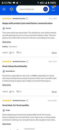 This is a fantastic tire and had great reviews. Look at my pictures to read a few. I attached 4 pages of reviews to this sale page. The reviews are still on Walmart's page. If you can't find it, write me and I'll send you a Link. Click on my pictures to read the full review. Walmart recently closed them out for a third of what they cost me. They usually put an incredibly low price when there's only one tire left. So don't think you could have had a full set at their close out price.
