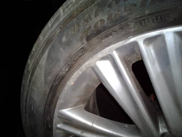 Some cosmetic curb rash on both wheel and tire. Perfect for a full sized spare or a replacement wheel