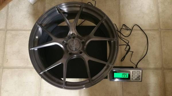 The wheels are fully forged and are very light. Compared to an Infiniti Red Sport factory wheel with run flat tire, each wheel/tire combo is about 18 pounds lighter.