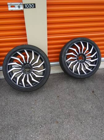 I have 4 Chopper Rims and tires. Only have 2 listed 4 sale. Because 2 are bad. They have been pot holed. Testament to Columbus roads. The other 2 appear to be in good condition. Holding air good. But you can come and judge for yourself.